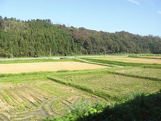 どさん、と乗り込む。敦賀からの地元の人ばかりで、晴れも曇りも、意に介しない人たちだ。福井行き列車は、無事発車。北陸トンネルに入る前、いやに車窓が夏なのに、地元の人ばかりなのが、哀しい九月らしい感じだった。