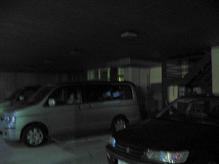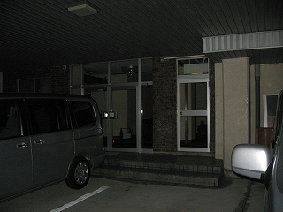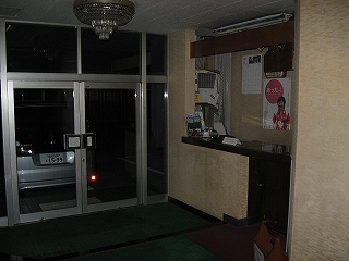 未明のフロント。本当に真っ暗のため、フラッシュを焚いて撮影。
