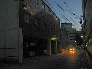 薄暗いため、地図が読みにくい。その地図によれば、この表通りの賑やかさを棄てよ、という。裏通りに入った。表通りの走行音が小さくなった。まれに出張風の人が歩いた。まず私のよりはいいホテルに泊まるだろう。案の定、遠くまで歩いていったその人の先には、新しいホテルの裏側が聳立していた。