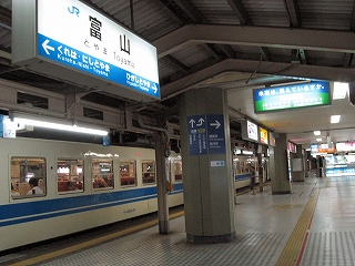終点富山に20時14分に着く。金沢からは1時間ちょっと。金沢以外の北陸では、20時を回ればもう夜も遅いということになるだろう。そういうわけで富山駅はお通夜のようだった。ホームの店はみな閉まっていて、自動販売機だけ。大都市近郊区間の、眩しいくらいに明るいホームに人が鈴なりになり、構内放送がやかましく肉声で響き渡る駅がある一方、早くも夜に自分の時間を過ごしている都市もあった。