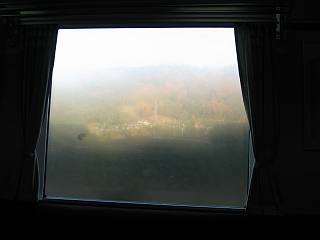 ほとんど長椅子仕立てなので、薄暗い車内は広く感じ、あまりぬくまってはいないが、くすんだカーテンに装飾された各々の大きな一枚窓は、露でうっすら曇っていた。客は二三でほとんどいない。その水滴のぼんやりしたむこうの木津川沿いの紅葉を、一人首をよじって見ているハンドバック抱えた男性が座っていた。ああ、きっとどうしても来たくなって、ふらりと乗っているのだ、と確信していたが、笠置に着くなり、その人は、あ、着いたわ、とさっと立って降りてしまった。