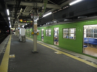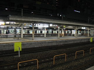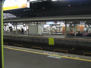 奈良線ホームにて隣のホームを。あの乗り場に新快速が停まることもある。