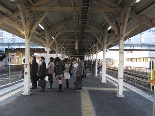 厳寒の奈良線を、年中かってに春めいている萌黄色の古い電車で、京都から乗り通す。途中の駅にて、交換し終えるまでドアが開け放しなのはじつに身に堪えた。そうでなくても各停だから、ドアはたんびたんびに開く。脚を椅子の下の暖房器具に押し当てるようにしてしのぐ。交換するのはクロスシートの入った白い列車で、やはり通勤時間帯は上りにいいのを入れてあるんだな。単線である。私鉄と並行しているせいもあった。しかし何年もかけて複線にするそうだ。