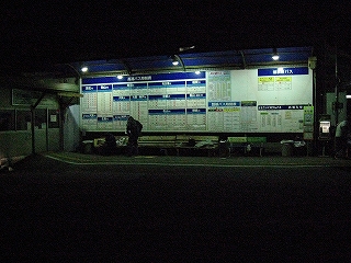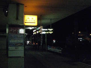 少しだけ歩いた。荷物運搬所の通路なら風がよけられるだろうと入ってみたが、むしろ風は通路を通っていた。そこにはビニールに包まれた新しい新聞が置いてあり、あまりここに居ないほうがいいなと思って、すぐに出て、椅子へと戻った。しかしそれから間をあまり置かずして、ちょうど荷物運搬路を見通せるところに停まっていた軽自動車から人が下りてきた。そして通路に入っていく。どうも新聞を運んできたのがその人らしく、怪しい人がきたと思い偵察しに来たようだ。そしてついにはバス乗り場のところまで回ってきて、大きく掲示されているバスの一覧を見にやって来た。いったいこんな時間にバスがあるとでも言うのか、とでも言いだけだ。さらに2人もいたから、謎が不愉快に強まったのかもしれない。とりあえず歩くのは、やめ。