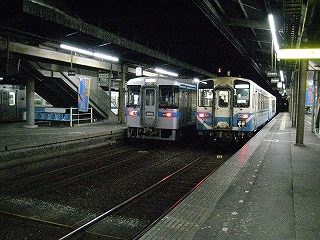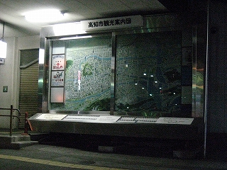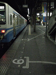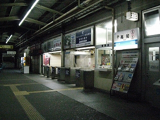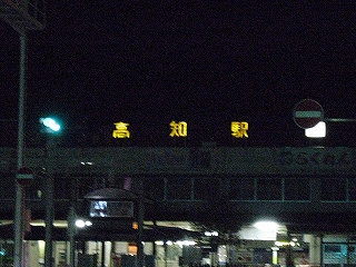 窪川から2時間弱、列車の中が寒いため、首にだるさを感じつつ高知に着いた。緑のシートを離れ、外に出る。時刻は22時52分で、まもなく23時。もうすぐ土曜日だし、誰か旅行者はいないかなと見回したが、見当たらなかった。みんなで跨線橋を渡り、人の流れに乗って改札に行き切符を見せると、いきなり「午前中から乗ったの?」と訊かれた。驚いてはいと応えたが、少しあとで考えてみると、スタンプの色なのだろう。でもわざわざ変なことを訊くものだと思った。金曜午後からのみ利用可能な切符もあるので、それと勘違いしたのだろうか。