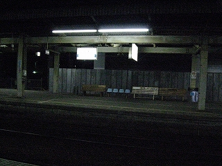 どうにかこうにか1時を迎えようとしたころだろうか、駅構内の自動放送が響き、列車が入ってくるという。こんな時間にあったっけと線路のほうを注視していると、須崎方面から特急の編成の入ってくるのがちらっと見えた。どうも23時30分に高知を出た須崎行きのホームエクスプレス高知が、回送されてきたものらしい。しかしこれでついに駅の一日は完全に終了。貨物もないから、この後はずっと静かなままだった。まだ1時。始発のある5時台の、1時間前になる4時から行動を起こすとしても、あと3時間か…。この1時間でもどれだけ苦労したやら。ましてや時間が経つにつれて1分1分は重くなっていくであろうに…。膝を抱き抱き頭を横に傾けて休んでいるが、やはりふくらはぎが圧迫されて、ときどき伸ばすものの、寒くてすぐにもとの姿勢に戻る。
