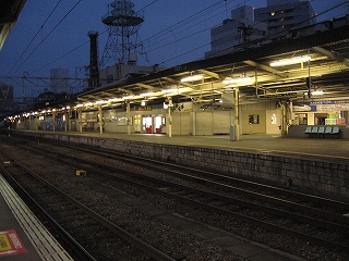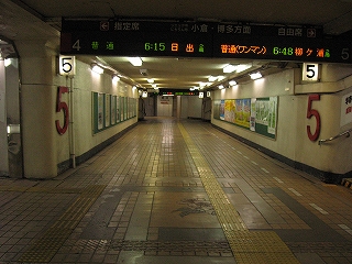目の前が大分駅だ。はっきり見取れる赤いネオンサインがその証。下り始発たる、6時18分の佐伯行きに乗る予定だ。コンコースはがらすきだが、特に緊張もなく改札を通った。