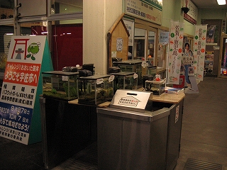 18きっぷだから、下車もすいすいだ。改札まで行くと、鑑賞に魚を飼った水槽がいっぱいで、珍しさと驚き、そして歓びとで硬直する。これは駅長の肝入りなのかな。いずれにせよ駅をわりと自由にいじれるのは、こういうのを見ると、なかなかいいことだなと思えた。元来、本来の業務が疎かというような駅はあまりないものだから、こんなことをやっていても安心だ。