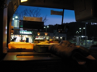 深夜に2,3回休憩で停まったのはなんとなく覚えている。というのは隣の人以外にも、停まるたびにトイレに必ず行く人がいて、眠たい頭ながら閉口したものだ。行っておかないとという不安もあるだろうし、四列シートなので疲れを感じていたのかもしれない。しかし私はといえば行きしも帰りしもトイレに行かず、またシートで疲れることもなかった。これが昼行便だと、そうはいかないのだが、夜行は、なんともない。