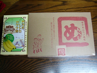 門司港は行っていないが門司港レトロバナナ餅。開けて食べてみると、駄菓子という感じだ。めんべいはからみがあって食べやすく九州らしい味で、人気だった。何よりも二つとも箱がほどほどの大きさ、よくあるクッキーの平らな箱などの半分くらいの大きさ、というのがよかった。なかなかちょうどよいサイズの土産は売っていないものだ。もらう人のことを想うなら、多少大きいものも持ち帰るべきなのだろうが…。