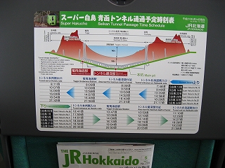 車内にて。海底駅の通過予定時刻表。 乗りながら、今ごろはこの辺、と想像するためのもの。