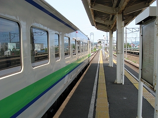 ほわっとトンネルを抜けると、草原にぽつりぽつりと小屋があり、津軽とは密集の度合いがまるで違っている。しかし植生のつくる自然の様相は、さして変わらないものではないかと首をかしいだ。とりあえず、無事トンネル内で事故もなく、来道を果たしたわけだ。トンネルを抜けてようやく後ろの赤シャツは音楽を聞いているのが耳ではっきりわかったが、そんなことを気にかけている暇はない、ともかく、もはや到着が時間の問題となった木古内で、絶対に降りないといけないのだ。しかも木古内での函館行き普通列車の乗り継ぎ時間は4分。計画書を見つめ、そのことを改めて肝に銘じる。いつ席から立とうか、立とうかと落ち着かなかったが、到着放送が出そうになる前に、がばっと立ちあがった、すると、後ろの赤シャツがびっくりしたように私を見上げた。スナック菓子を食っていた手が止まっていた。