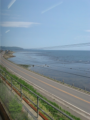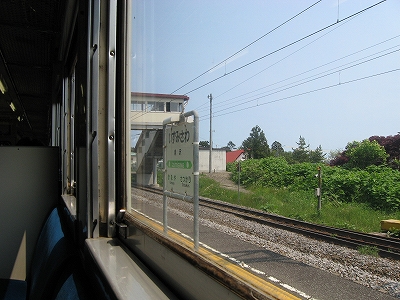 普通列車と異なって客室に乗降ドアがないから、気づかないうちに音もなく動き出している。地図では駅を出るとγに分かれていて、右に入り、津軽線に入るのだがそういう方向感覚は分からないまま、左の窓は田圃が広がり畑が目立っていた。