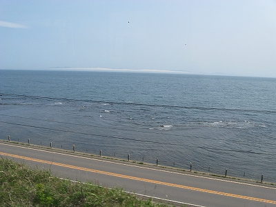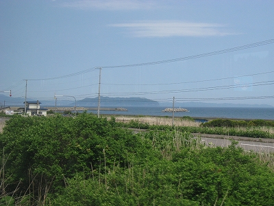列車は右に傾いて、咸臨丸の沈没地と書いてある、陽光の降り注ぐ平明な岬を見せつけるようにして、ショートカットしていった。「あ…。(ここに駅があったら…)」 岬に萌えた薄い緑も、儚い輝きの海面も、鐘の音のような船の名も、みな今は、燦然ときらめいていた。見れば見るほど、道南はいま一ばんいい時期なんだ、と思え、ほとんどの時期はこんなんじゃない、こんなんではないのだ、と私は、自分自身によって、脅され続けていた。