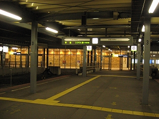 五稜郭に入るころには速度をすっかり落としていて、以来あの走りを見せることはなかった。駅前の大型電気店の明かりが見えて、街に入ったという感じだ。ここを出れば放送で言われなくても、めいめい網棚から荷物下ろすなどし いそいそと降りる支度をしはじめる。その光景の中、本日もJR北海道をご利用くださいましてありがとうございました、まもなく終点函館、函館です、と流れるのは、北斗の車内のいつもだろう。