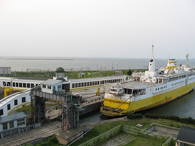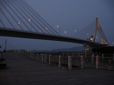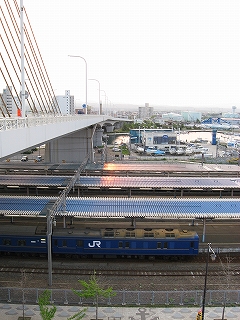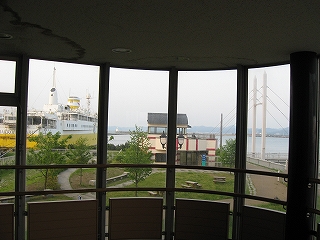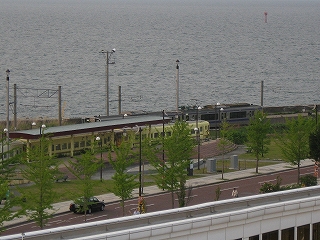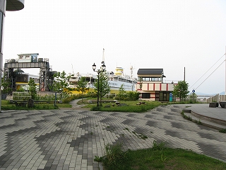 そして時間つぶしならとここと思っていた、港の公園へ。廃編成が展示してあるそこは人もほとんどおらず、構内に寝台列車の停まっているのも見えて、旅人のスポットらしい感じだった。またもや高校生の男女がひそかに抱き合っているのを目撃する。青森は派手なんだね。ねぶた祭りからも察せられるというものである。しかしこの男子はいかつくなく、都会風に細身で、女の方も小動物のようにくるくるしていた。はて自分がどこか休めるとこはないんかな、と探して、摩周丸の脇の小さい2階建ての屋上に入った。すると高校の先生だろうか、この辺を見回りに来たらしく、先の男女を一喝して追い出しているのが見下ろされるではないか。どうもこのへんは格好の逢引きスポットになっているらしい。確かに青森にしてはロマンチックなところだ。が、2人のいた場所は港を悠々股ぐベイブリッジの橋脚のたもとで、なんか場所の選定が乞食みたいである。その先生は私のいる屋上まで来たが、一人でいる私が高校生でないとわかるや、すぐ階段を下りていった。ちょっと自由を感じる。そういえばその年ごろの時分、同級が文化祭の後こっそり公園で打ち上げをしていたところ、暴走族に目を付けられたとかでPTAが紛糾したことがあった。あのころの私は取り沙汰されるようなことは何もせなんだ。それで不自由も感じなかった。それで今もさして自由を感じない。