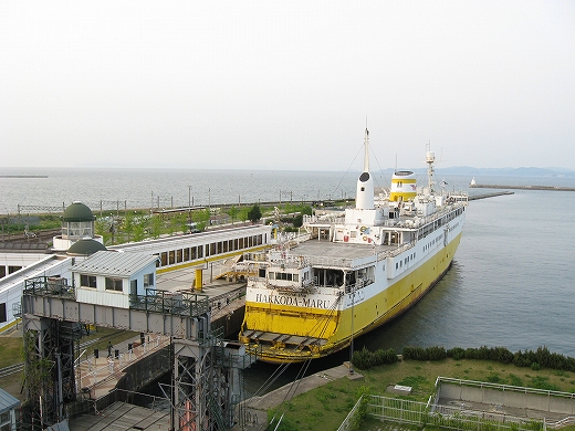 ここからだと連絡船への跨線橋が八甲田丸の色と