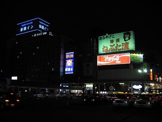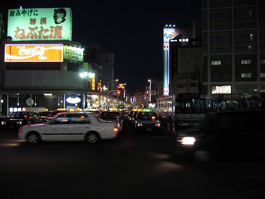 残光を失い、辺りが青暗くなった。冷たいブルーのネオンサインが波止場の海面に靡く。青森は、光の演出に敏感なようで、レインボーブリッジの橋脚や、広告塔、あおもり駅という、青りんご色の光など、あちこちで落ち着いた光彩を闇に浮かべている。かと思えばアーケード街は燦爛として、飲み歩く町の風情を醸している。