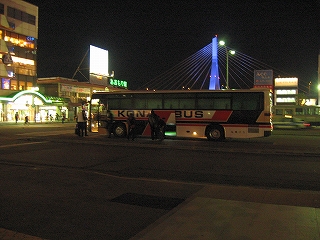 19時も終わりころ、目の前に弘南交通の上野行きパンダ号が入ってくる。予約している同じ弘南交通であるし、1時間も早いがもしかしてこれか、と急に不安になる。しかしいかにもお上りさんという扱いが受け入れられているとは。さてどうしても自分のバスか気になって、添乗員のところまで歩いて尋ねてみると、蛙声で、これは19時50分発の上野行きだよ(だから違うよ)、と、変なことを言うものだという視線とともに一蹴されてしまい、そのまま引き下がる。確かに自分のは20時50分であるから違う。しかし青森から1時間違いで同じ会社から東京方面のバスが出ているんだ。このときまだ青森と関東のバス交通線があやとりのようであるのを知らないでいた。