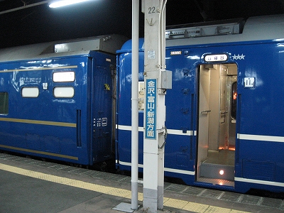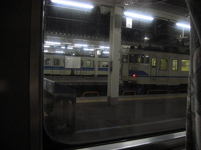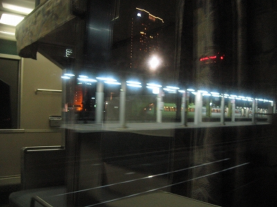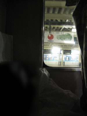 富山に着くともう夜も深いといった趣き。車内は減光もしているし、放送も休止している。しかし時刻はまだ22時半前だ。仰向けになりつつ富山の「コカ・コーラ」や街の薄い灯りを暗い窓に映し出していると、隣の人が乗って来た。その人はすぐにカーテンを閉めて眠りにつく。すると車掌が回ってきて、暗がりの中で切符をと小声で言いつづける。その人はどうもカーテンから手だけだして見せたようだった。買ったものにとっては持ってるに決まっているのだが、車掌は仕事だからしようがない。隣の人もさっさと寝たいたいだけのようだった。