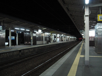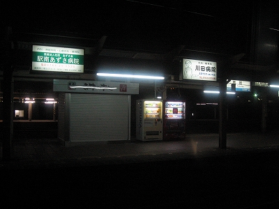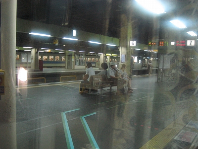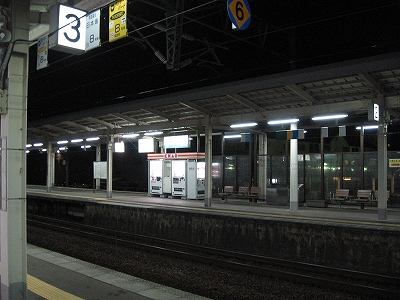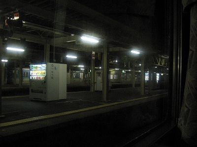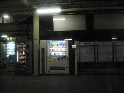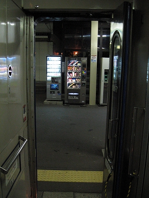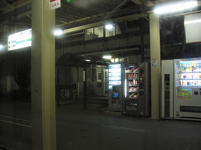 目の前に菓子の自販機がある。そんなものがあるということは久々に立派な駅に来たということになる。けれど私には出る勇気がない。というか迷うのがいやで、スリッパのままである。とにかく停車は運転士交代の間だけなので、置いてけぼりになるのを懼れた。もっともレチは阪車だから意は汲んでくれそうだが、うっかり見落とされて騒いで乗せてもらった挙句、阪車らしい気さくな口吻で説教されそうなのはいやだった。