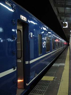 「日本海」は暗い夕もよいにやってきた。これくらいの仄暗さに発つのはなんともいえない濃密なロマンを感じさせてやまなかった。やはり車内販売はない旨が何度も告げられる。目の前に列車が止まり、濃紺の車体の折戸が開く。星3つのB寝台。また始まるのか、と思う。でもこれが自分の選んだ道じゃないか。自分で決めたことだ、と寝台車に乗り込む。喫煙車に乗り込むのは妙に気恥ずかしかった。