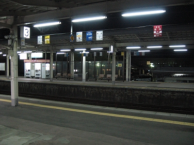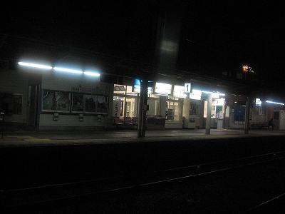 加賀温泉で一休止。車販はないからここの自販機で飲み物でも買えとの旨のアナウンス。加賀温泉もバブルの90年代はでっかい温泉郷という印象だったが、その後、生き残りをかけた取り組みがあったのだろう。夜になると駅はきれいさっぱりとしている。湯上りにふさわしい、北陸の風が流れている。