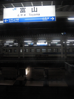 多くの旅行者を魅了した高岡駅ははや眠りにつき、明かりも落ちてよく見えないので、私も富山に着く前に寝支度した。真面目な人は洗面所を行き来し、歯磨きなどしている。