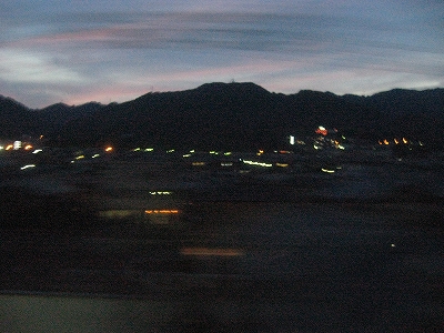 闇に包まれはじめた西近江路を淡々と進む。津軽への長旅の序章としてこの平和の湖と江州の町並みを眺め下ろしつづけるのは恰好の車窓だった。しばらく光の町が見えたかと思うとそれは堅田であった。