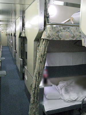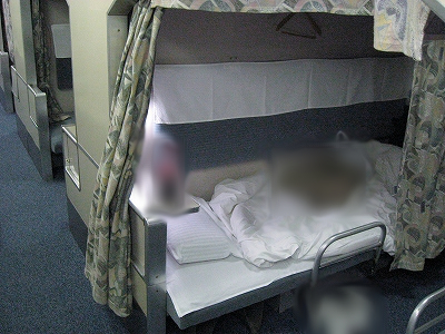 出発はまだ暑い16時ごろ、夕方前。空いているはずなのだが、B寝をこわごわ聞く。すると、上段しか空いていないと言われ、びっくりした。そんなに乗ってるんだ! しかし上段はほとんど空席だと教えてくれた。廃止の話も関係あるかと思ったけど、その影響の大きさをこの日ははっきりと認めるほどではないようだ。上段にも乗ったことがあるけど、やはり今はおもしろくないので、下段がよかった。不思議なもので、子供のころは上がよかった。でも18以降は、どういうわけか下がよくなった。いまは一人用ロフトベッド自体、敬遠する気持ちになっている。高さそのものがつまらなく、貧しくさえも思えるようなのだった。それゆえあえて、という考えもありそうだった。