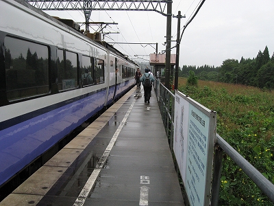さすがにこんな津軽今別なんかで特急を降りる人はいまいと思いきや、人は多かった。ビデオカメラを回している人もいる。休日だが雨というのに、ここまで人模様が違うのは、それだけ東京の存在が大きいのだった。