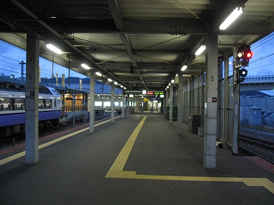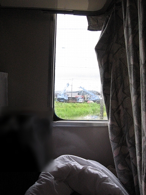 しかしそれから1時間経たないくらいで再び目が覚める。なぜって、まったく列車が動いてなかったから! 外は夜明け前の青いどす暗さだ。日本海らしい寒気による雲の重みのせいもあった。しかしどこをどう見ても、ここがどこだかさっぱり見当がつかない。指標たる駅にいるにもかかわらず! 鉄道を乗り回しているのにここまでわからないのは不思議だったが、そんなのに酔っていないではっきりさせろ、と、改めてベッドから窓に張り付き外を仔細に観察した。しかし一向に解を見いだせない。本気で確認することもできたと思うが、やはりまだ眠たく、「とにかく…新潟っぽいな。」と。そのことと時刻は5時前なのを考え合わせると、そろそろこれはまずいんじゃないかと思いはじめた。