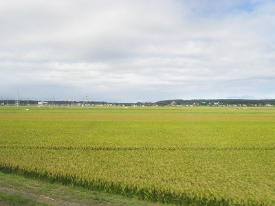 スーパー白鳥の舎内にて。津軽半島の風景。