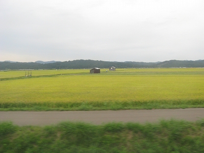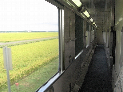 それから1時間経ち、腕時計は6時半前を差すが列車は動かず、もうすっかり私はだらけていた。こんな時間のこんなとこに「日本海」がいるのはおかしい。すでに大舘か鷹ノ巣くらいには行っていないといけない。あの朝の時刻の津軽入りが新鮮なのに…。すっかり明るくなった曇りの稲田とともに本日の予定がパーであることを悟るが、変な焦燥感に包まれつ私はカーテンを引きまわして篭もり、ため息ついていた。