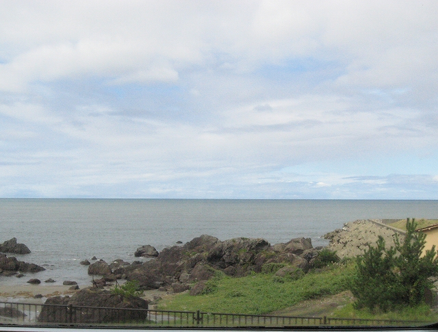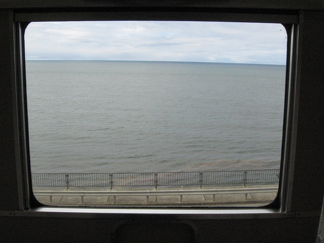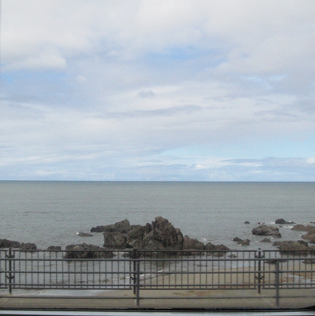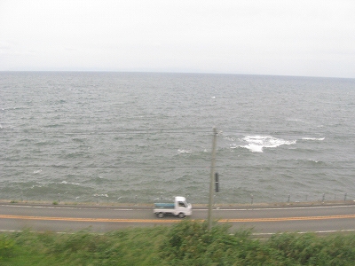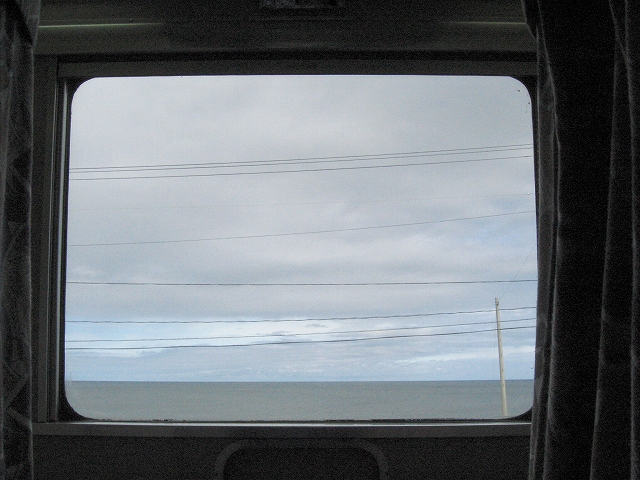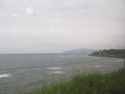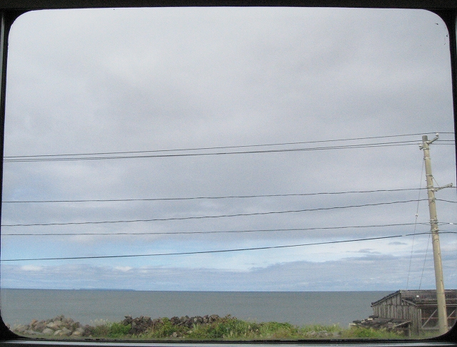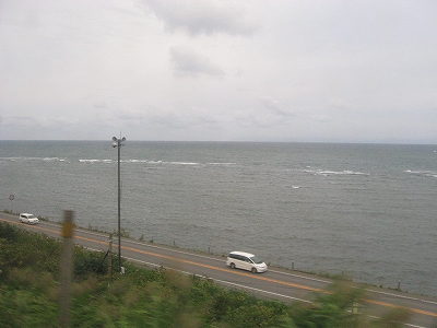 その後昼下がりに寝台列車にいながらにして鳥海山の麓、遊佐の奇岩ある絶景に出遭い、はっと目が覚めるようだった。窓辺の席に移動しつつ、まっ平らな飛島を不思議そうに観察する。けれどほとんどの時間は寝台のカーテンを引きまわしてひき篭っていた。それで予定の立て直しも終わった。もう今はすっかり諦めて、針葉樹や穀倉地帯を眺めつつ向うに足を伸ばしたり、好きなだけごろんと寝たり。途中放送があり、「青森にはこのまま順調に往けば14時半ごろの到着になる見込みです」というので、おどけて失笑を漏らしてみたり。しかし完走してくれないこともあると後で知り、これは御の字だったようだ。