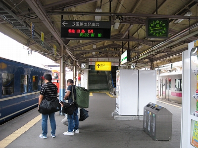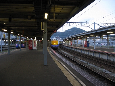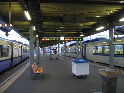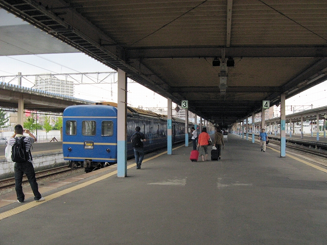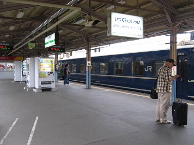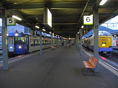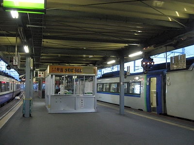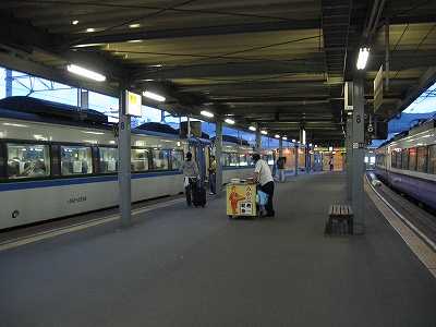 ちょうどそのころ突然、大雨が降りはじめた。一気に湿っぽい空気が駅舎の中にまで入ってくる。人々も濡れ鼠か、傘の処理に困っているといったふうだった。もはや駅舎の外に出たくないと思うくらい。夕立のようでもあった。すぐに出るスーパー白鳥に飛び乗ることにした。18時間前に寝台列車に乗ってからまともに食べていないので食事をするか買い出しすると決心していたが、このまま周囲をうろついたら着函する時刻が遅くなる一方だと不安になったのだった。
