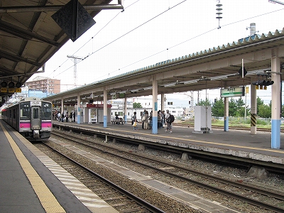 ともかく徐行のせいもあり鶴岡に着いたのは朝9時。酒田が9時半で、トータル5時間半の遅れである。雨も降らない変な曇り、そんな午前に流れる気だるい自由な時刻が、体のだるさを倍加する。