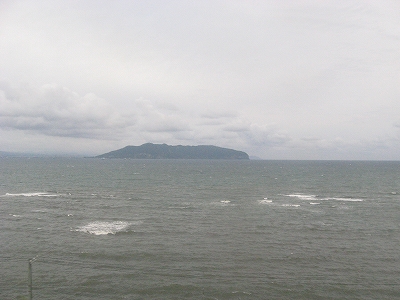 雲は多いが気にならなかった。天気は回復傾向。飛島(とびしま)が見えている。