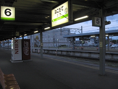 17時半、急に暗くなった函館に着く。客は少なかった。函館駅は相変わらずしゃれてあちこちネオンが灯って煌いていて、港の風は駅まで入り込んでくる。それにあたりながら「ようこそは函館へ」の、サッポロビールの供するホーロー看板を私は一人見つめる。またこんなところに来てしまったか、という思い。私は時間を空費しているのだろうか。一人でここに来て楽しむわけでもないし、楽しむとしても独りでそうして一体何になろう!