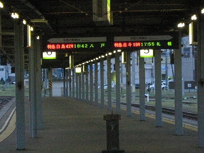 私にとっては18時間の乗車となり、とうとう青森着。もういいわ、と列車を後にする。14時半だが、曇りや秋の前のせいか、なんか暗い感じだった。客らも疲れた感じで三々五々散っていく。これからの予定の立て直しで忙しいからだろう。