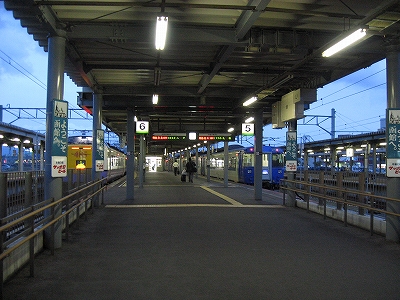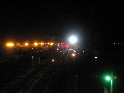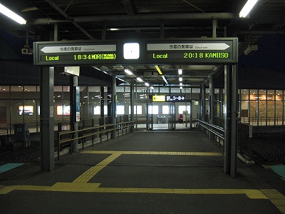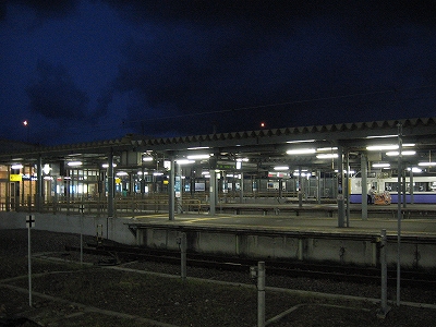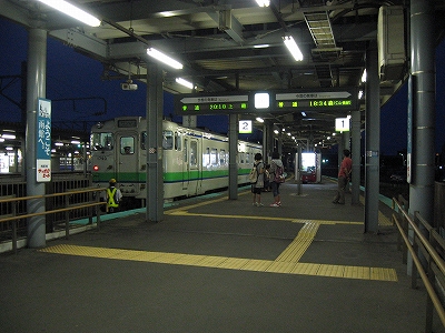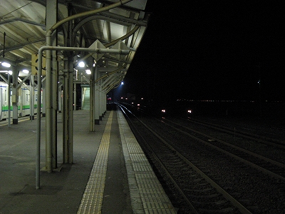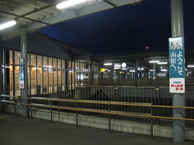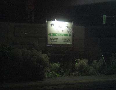 無事、何事もなく森に着いた。ごらんのとおりで中道南を抜けるまでで一日仕事、もう20時半を回らんとしている。ここで乗り換えだ。こないだ着いたとき同様、もうすっかり夜である。初めのころは「森に着く」と読むと、何度もどこの山林?と思ったものだ。そんな地名はたくさんありそうだが、それが駅名になるとちょっと妙である。今は慣れたけど、それがつまらないというわけさ。