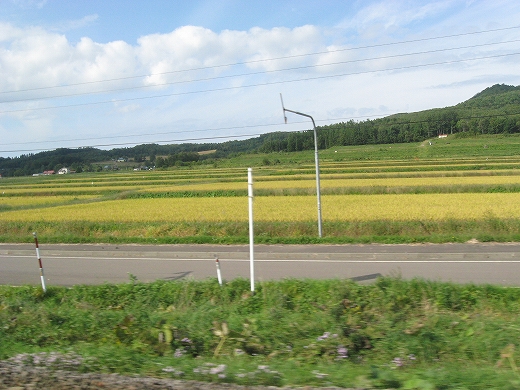 それから汽車は雨竜地方の空知平野を光り輝かせ、妹背牛などののんびりしたところを過ぎる。車内はいかにも道産子らしい身長180,体重70kg代の髭を生やした男子大学生4人組が膝突きあわせて旅行中だった。対置させたら、私はシティな感じにしかならない。彼らは腕組みし、おし黙ったままずっと流れゆく外の景色を眺めている。こんななりの道産子でも景色を眺めるんだな、と思うと、少しおかしかった。そして或いは、一区間だけ女子大生が特急をちょろまかした。岩見沢は退屈に午睡していた。好天の空知地方ほど眠気を誘うものもない。