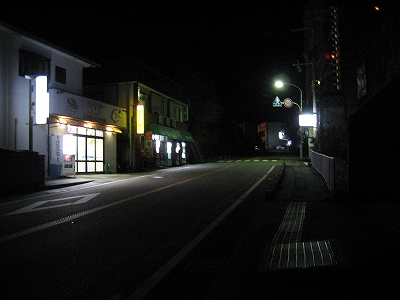ただただナトリュームランプが点々と、登りながら屈曲する道を照らし、くくくくく、そういう路面表示を強調している。昔ならオートバイが好きこのんでこんな時間にぶっ飛ばしそうだ。まあ死に号線、なんていわれてるけどね。