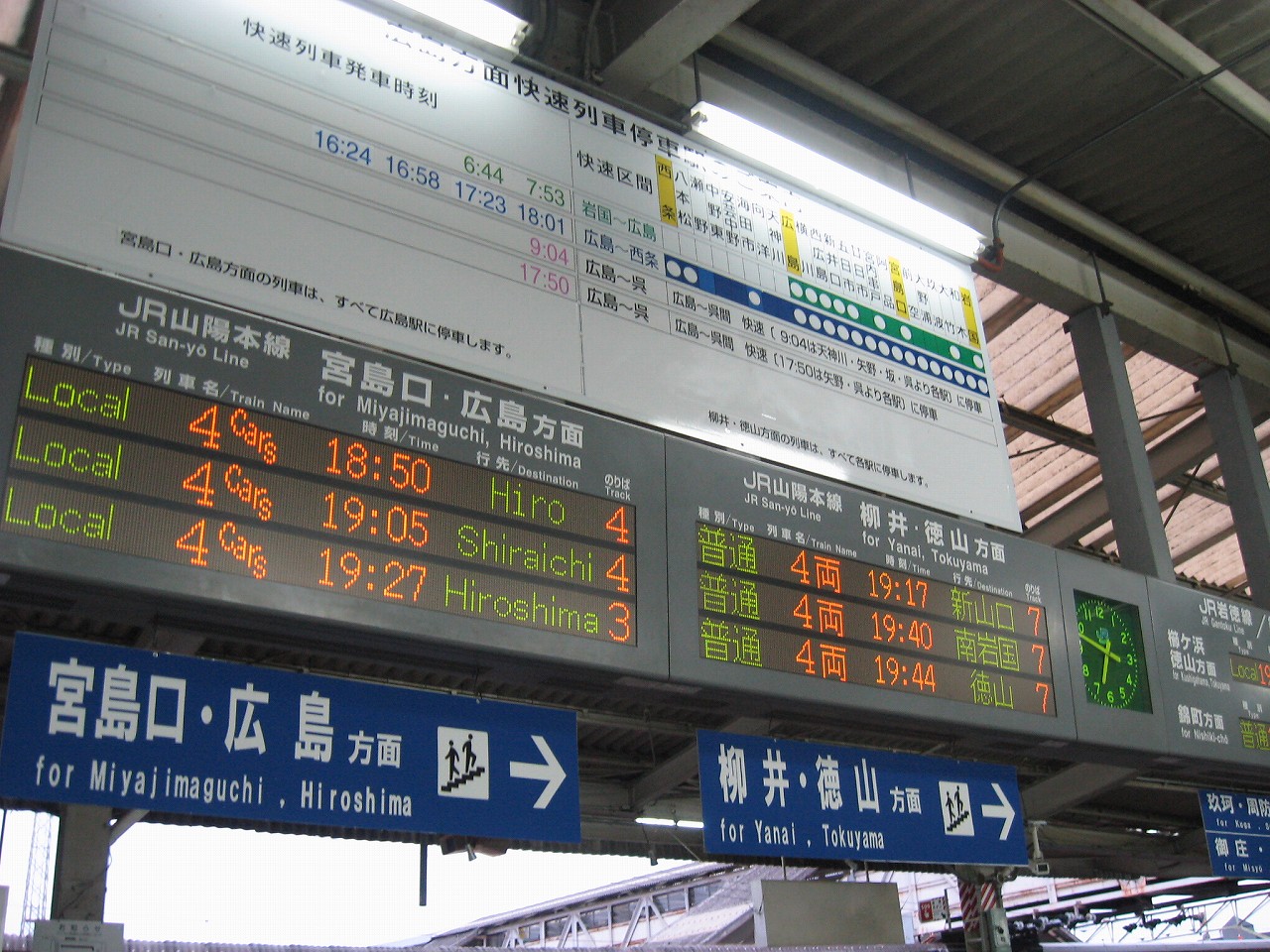 すべてを岩国駅周辺で片づけて、駅へ。岩徳線の列車が早めに入っていたから、自分も早め車内に落ち着いた。すると振り返った運転士と目が合う。こんな時間にこの列車に乗るのは、地元の人か、仕事帰りの人か、部活の子か、そんなところだろう。何人かご同輩らしきも見かけた。就職した青年期の男性で、一人旅らしき人だ。たぶん大きなバッグには一眼レフが入っているに違いない。一般にこうした種族は互いを避け合うのだが、本来的には別に会話があっても悪くないはずだ。けれど我々は孤独を好む。いや、何さ、鉄道の時代なんてとっくに終わっている。孤独も何も、何もかも壊れてしまった鉄道に、孤独を託すだなんて、自殺行為も甚だしい限りではないか!