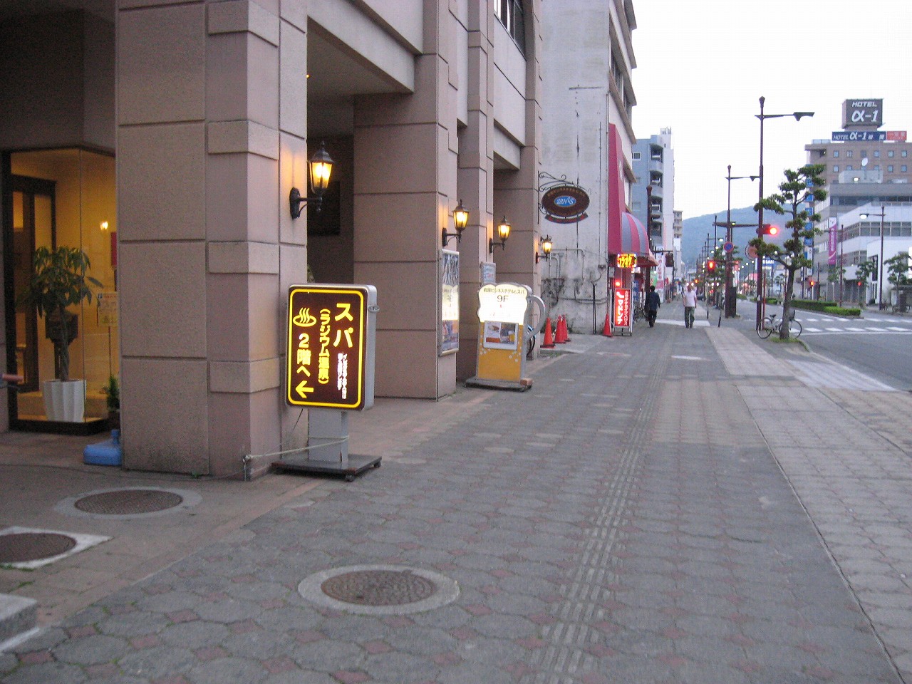 ラジウム温泉の方はあっさり着いた。なんかビジネスホテルとシティホテルの中間のようなちょっとしゃれたビルだけど、日帰り入浴をやってくれているのだ。というか、まさにこういうホテル、一人旅にぴったりだよなぁと。けれど宿泊より駅寝に活路を見出してしまった後となっては、入浴場としていろんな施設を使い倒すばかりとなっている。