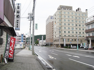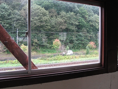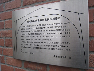 改札から出ようとすると、出られますか、と訊かれて、出してもらう。乗り継ぎもあるし、訪れる旅行者も少なくなく、慣れているのだろう。駅舎内に入ると薄暗く、ちょっと昭和の薫りがする。奥手の待合室では音もなく静かに地の人が何人か掛けており、売店では駅弁を置いていた。建物から出たところも総じて臙脂色でまとめているのも、昔懐かしい北海道旅行ブームを思い出す。通例の閉じ込め教育に疑問を持ち、ワンダーフォーゲルが興り、ユースホステルが建てられたころ…。夏は花、冬は流氷、と、以前より観光で栄えてきたことをうかがわせていたが、九月は中途半端だし、今日は天気のせいもあり、旅行者などいなかった。オホーツク観光と銘打った塔は、まさしく追憶のそれにふさわしかった。臙脂色はもちろん、網走監獄だ。そして青い柵はオホーツク色。駅が高台なので、そこまでの階段にはふんだんに煉瓦を積み、刑務所風のいかめしい表札を掲げている。監獄の顔出し枠があるのも、自らにその可能性がない人の方が多いからだろう。こんなふうに暗い書き方になるのも、網走の持つ厳しいイメージのせいだろうか。