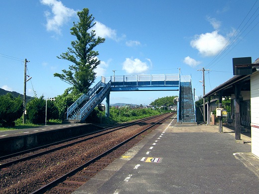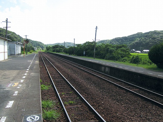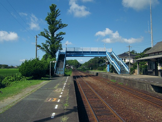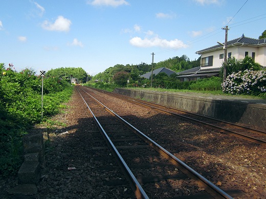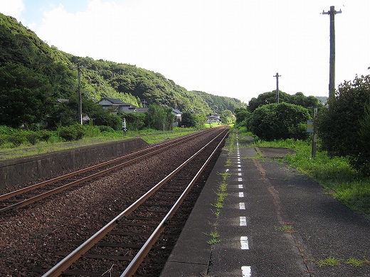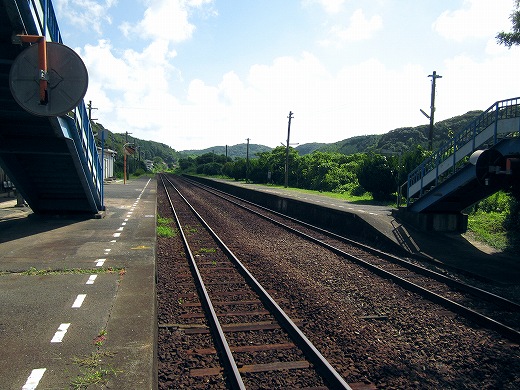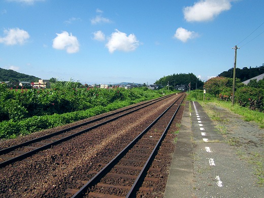 でも、ここに来て気づいたんです。あれ、線路が曲がってるなって。つまり、海岸本線はだいたい西を目指してずっと走ります。けれどもそれが、ついに下を向いちゃった。どうも角島というあたりで、線路は方向を変えるみたいです。(たしかにその近くのこっとい、というところも不思議なところでした。) こうして見えないうちに曲がってしまうのは、旅をしないうちにこの現実社会に溶け込むような要領のよさも感じます。つまり方位磁石だけを見て、生活を決定するといったようなことでしょうか。