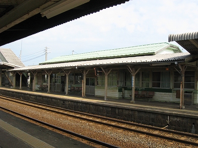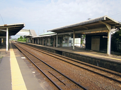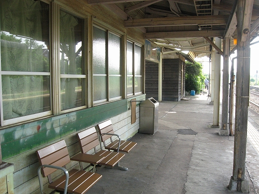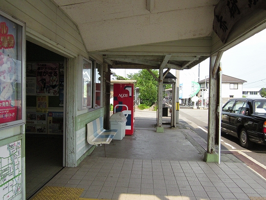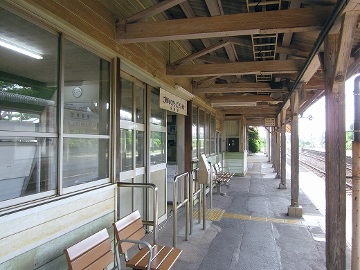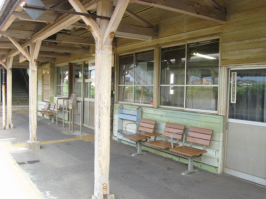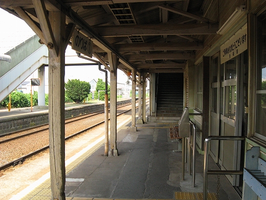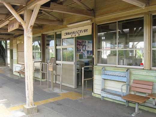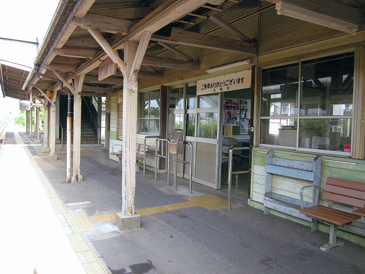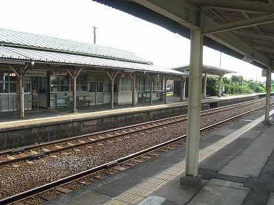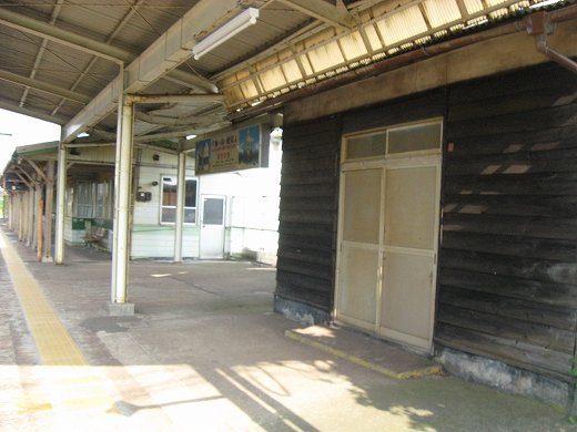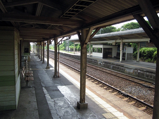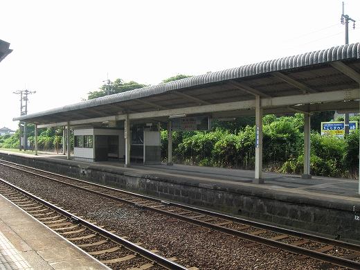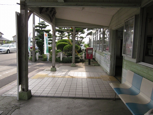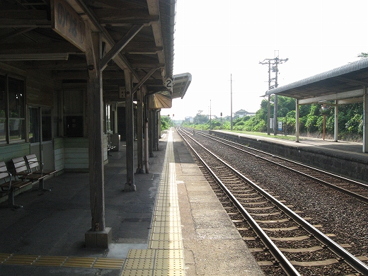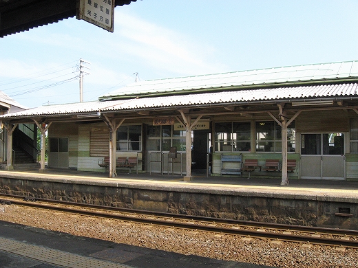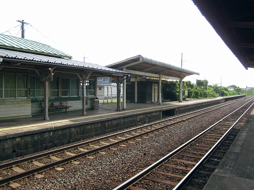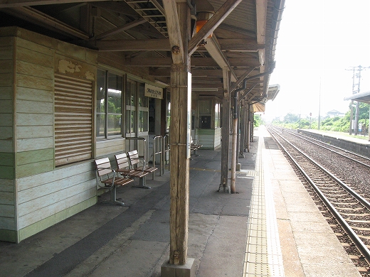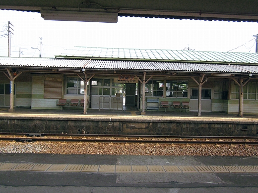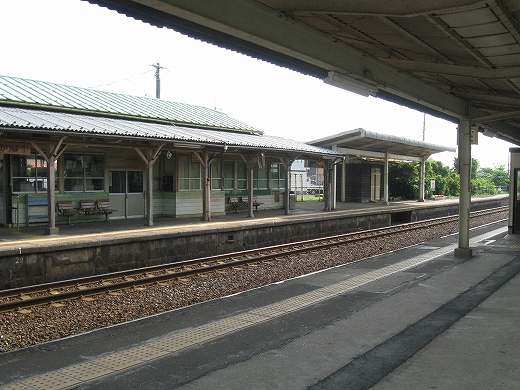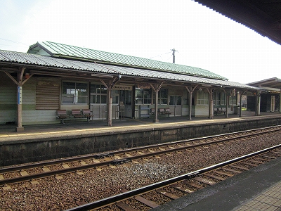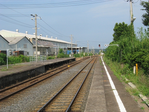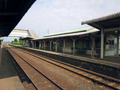 駅はかなりに鋭角な三角屋根の木造舎で、中と合わせても山陰のどこにでもありそうな雰囲気なのだが、外に出ると不釣り合いにかなりの敷地が広がるのみで、ちょっと妙な感じを受ける。どこか工業的だ。でもその面影もない。歴史は…まあ研究家に任せるとするか。