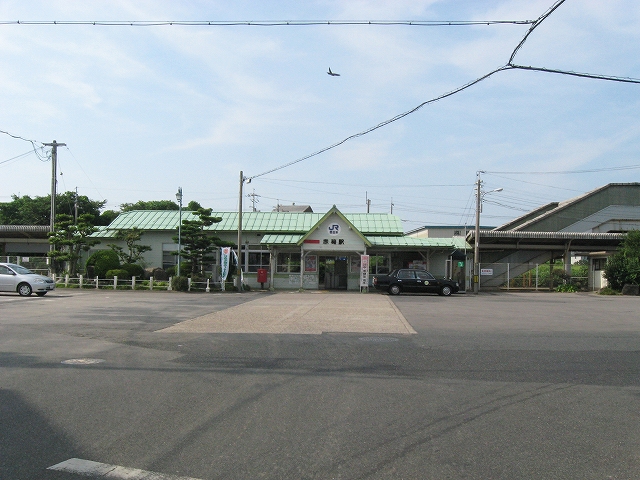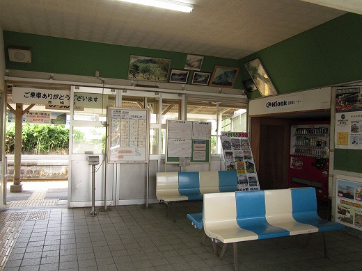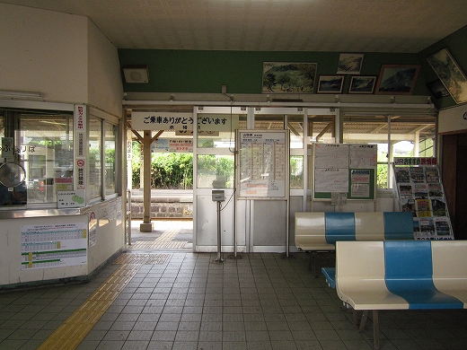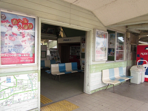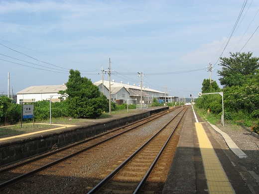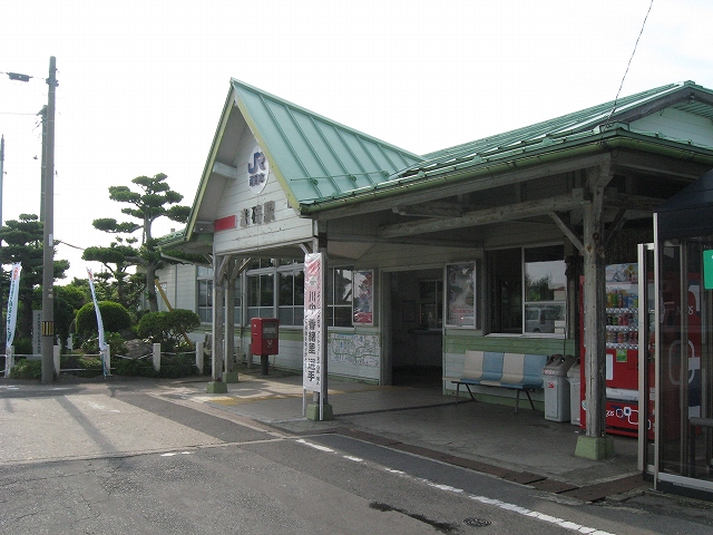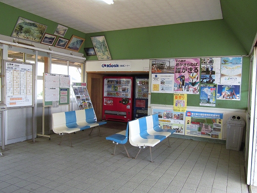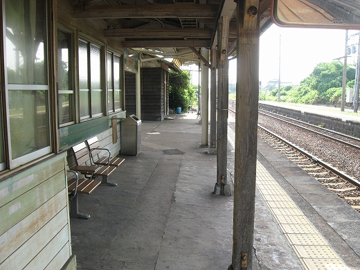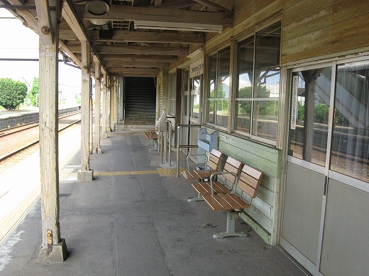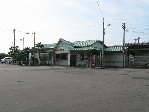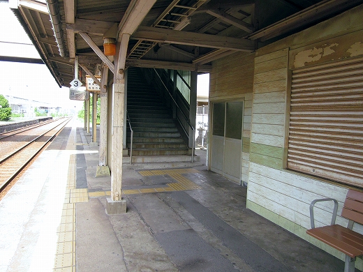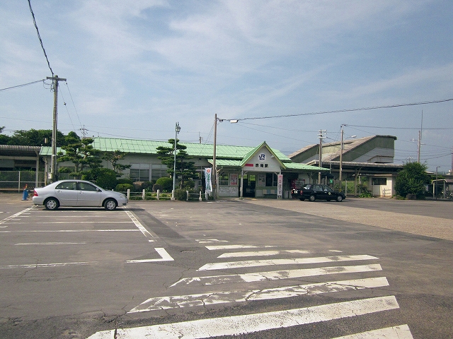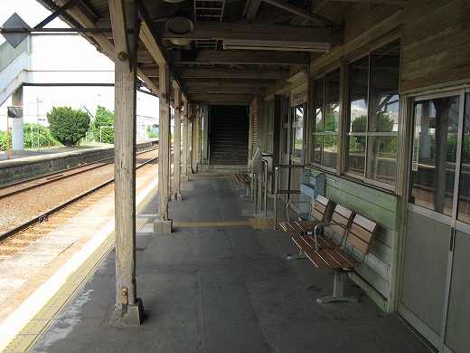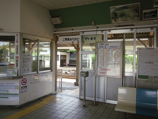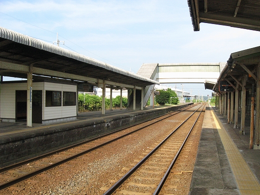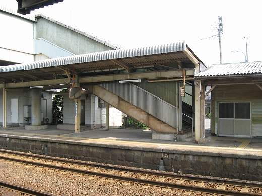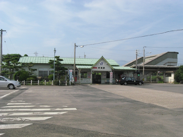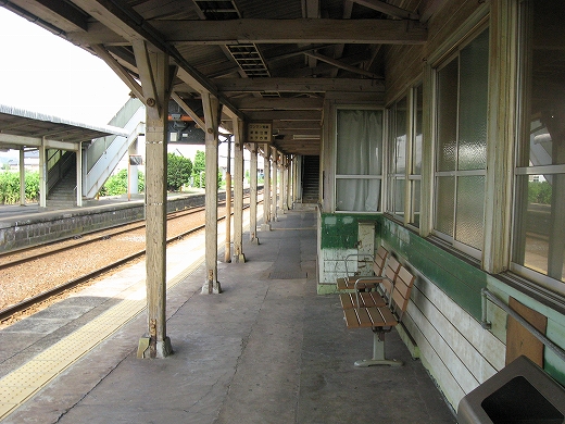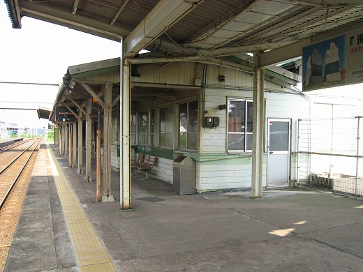 駅はかなりに鋭角な三角屋根の木造舎で、中と合わせても山陰のどこにでもありそうな雰囲気なのだが、外に出ると不釣り合いにかなりの敷地が広がるのみで、ちょっと妙な感じを受ける。どこか工業的だ。でもその面影もない。歴史は…まあ研究家に任せるとするか。