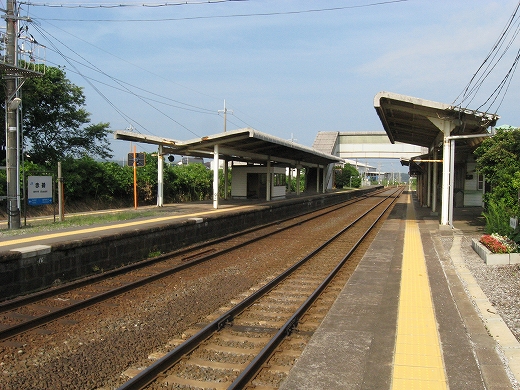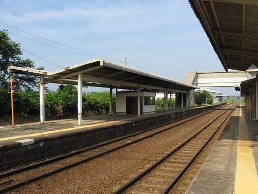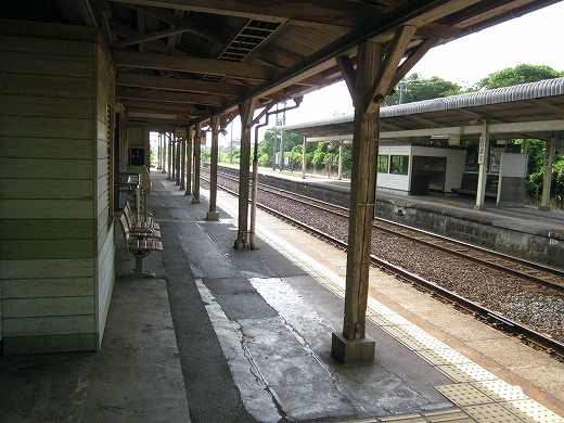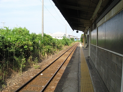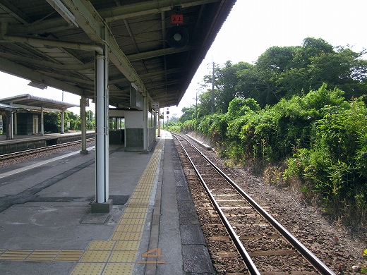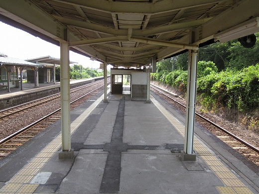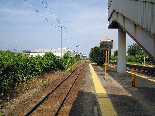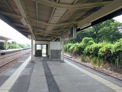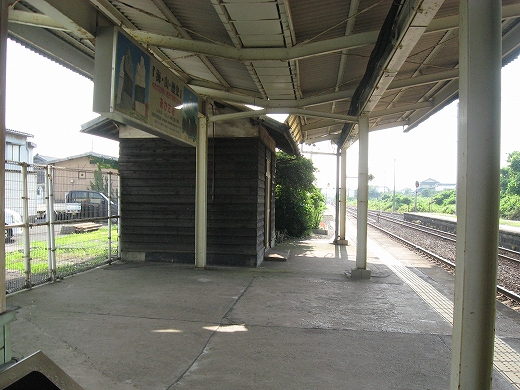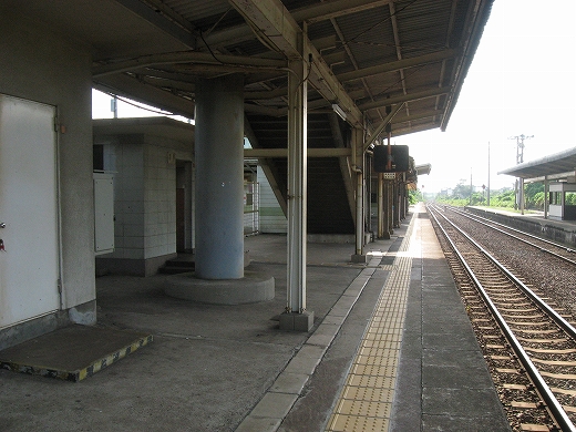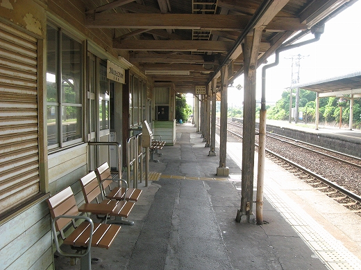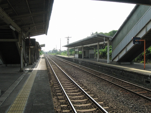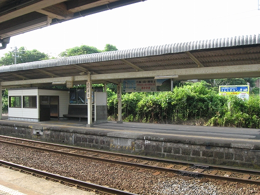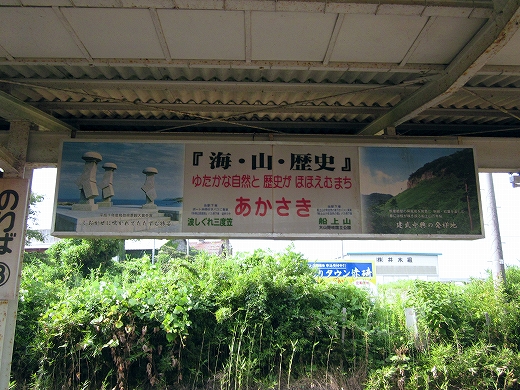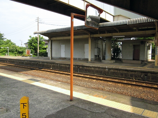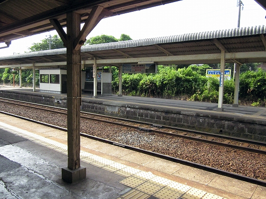 私は、あっつ! といいつつ、ホームの端に赴く。そこに私がここに来た記念になる駅名標がある。事実猛烈に暑く、もう梅雨が完全に開け去ったのが報道に接しなくてもわかった。「そんなん見んでもわかるな。」 懐疑する必要はまったくなかった。それに…通信端末も何もない、山陰の夏の旅行だ。